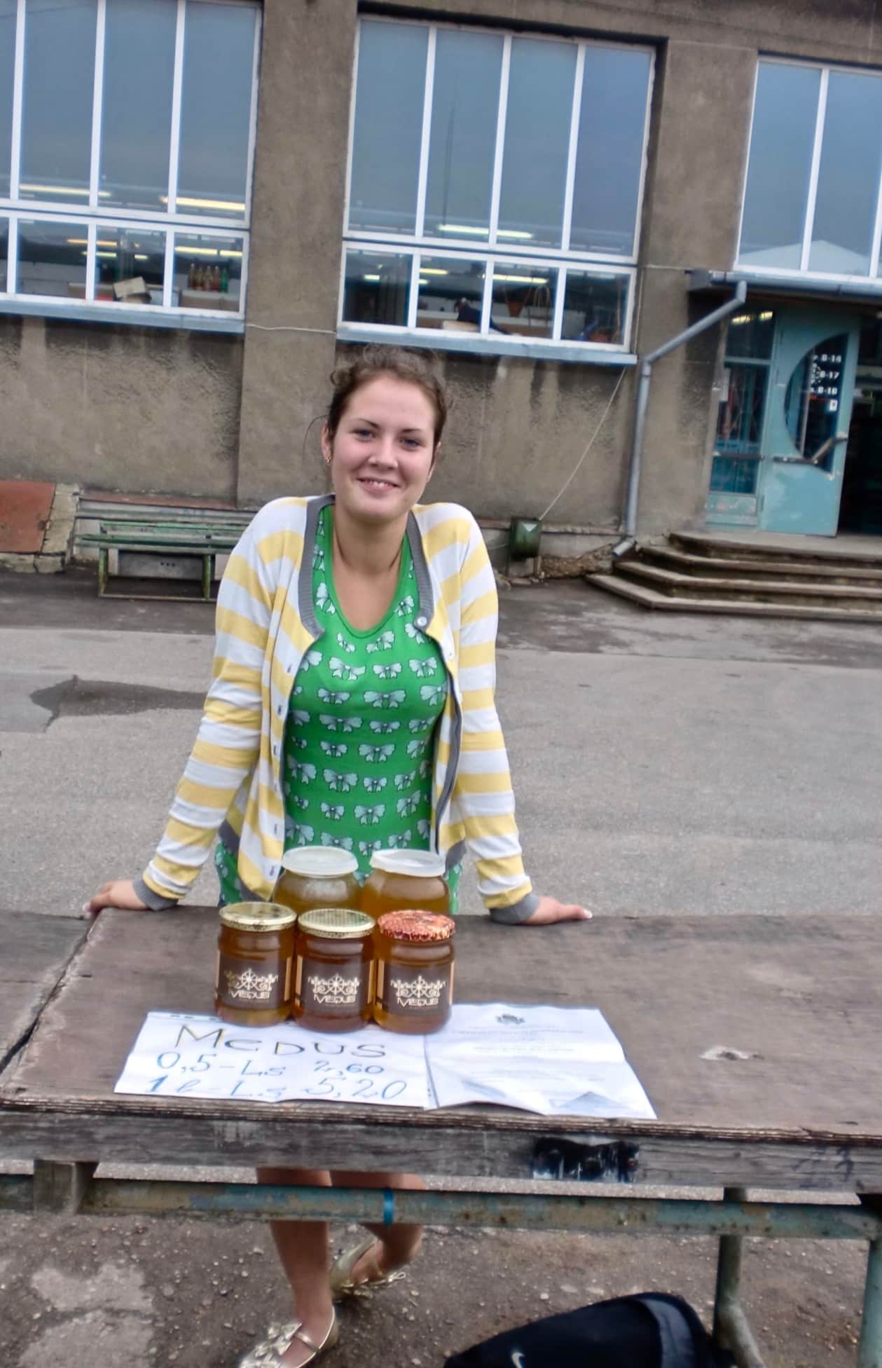 In the sovjet style eatery it is still pay first, get your ticket then the food. At a small open air market farm produce is sold and this is where we see smiles for the first time.