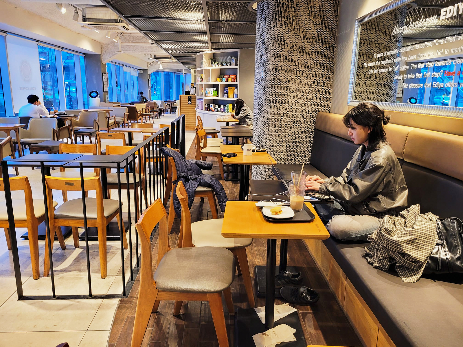 Want to work quietly on the internet in Korea? Go to a coffee shop. Many families have limited space at home and many youngsters live with their parents so a cold latte gives you entry to good wifi and a space to do your thing.