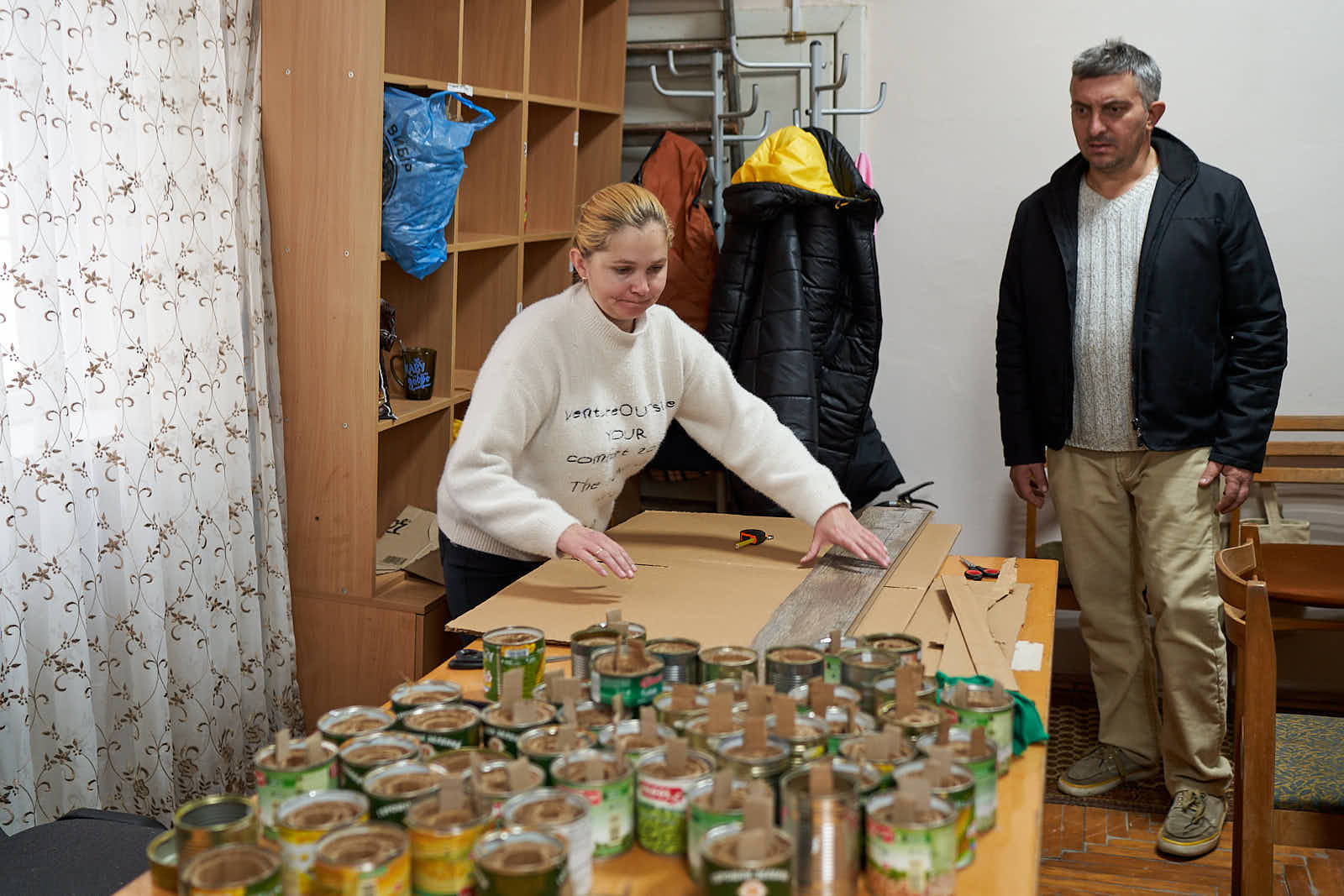 In the small city, the couple is well known. Volunteers contact them if they want to contribute by making mavkas (sniper camouflage outfits), candles, trench socks and vacuum-dried packages of vegetables for the preparation of borsch at the frontline. Ivan drives the products to the front (together with other volunteers) and returns with bodies. A gruesome exchange.